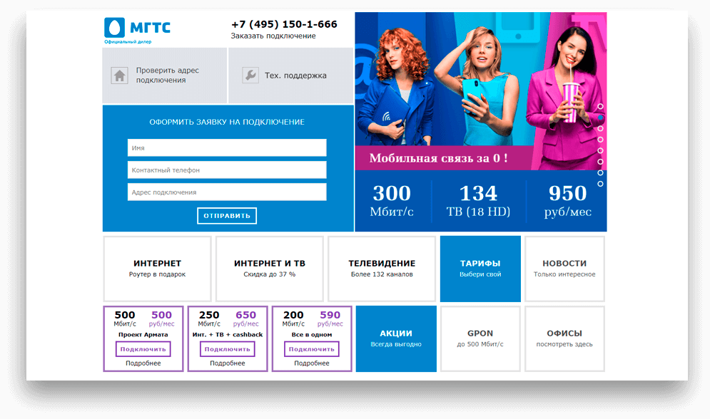Провайдер даёт возможность подключать Интернет вместе с мобильной связью. В этом случае в комплекте с доступом в Сеть клиент получает в своё распоряжение один из мобильных пакетов МТС – Smart Mini или Smart Non Stop. Причём тарифный план устроен таким образом, что абоненту звонки по телефону не будут стоить ничего. Детальнее об условиях пользования подобным тарифом вы можете узнать на соответствующей странице сайта.